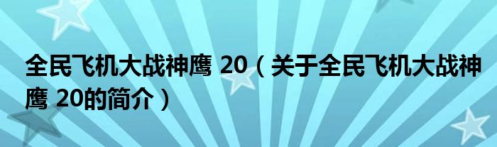 本文關于全民飛機大戰神鷹 20的簡介就講解完畢,希望對大家有所幫助。