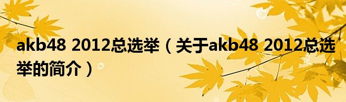 本文關于akb48 2012總選舉的簡介就講解完畢,希望對大家有所幫助。