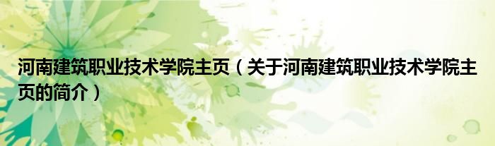 本文關于河南建筑職業技術學院主頁的簡介就講解完畢,希望對大家有所幫助。