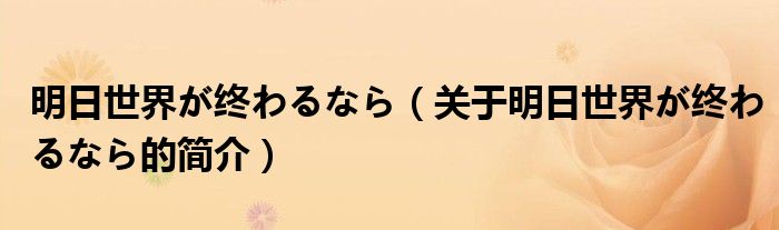 本文關(guān)于明日世界が終わるなら的簡(jiǎn)介就講解完畢,希望對(duì)大家有所幫助。