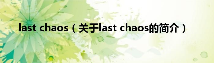 大家好,last chaos,關于last chaos的簡介很多人還不知道,現在讓我們一起來看看吧!