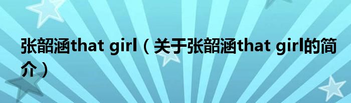大家好,張韶涵that girl,關(guān)于張韶涵that girl的簡(jiǎn)介很多人還不知道,現(xiàn)在讓我們一起來看看吧!