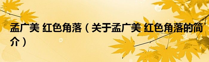 本文關(guān)于孟廣美 紅色角落的簡(jiǎn)介就講解完畢,希望對(duì)大家有所幫助。