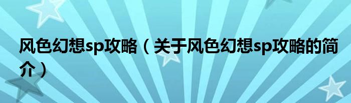 本文關(guān)于風(fēng)色幻想sp攻略的簡介就講解完畢,希望對大家有所幫助。