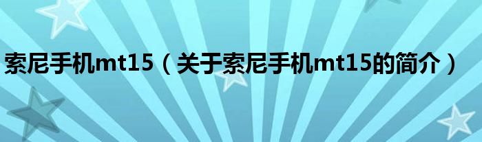 本文關于索尼手機mt15的簡介就講解完畢,希望對大家有所幫助。