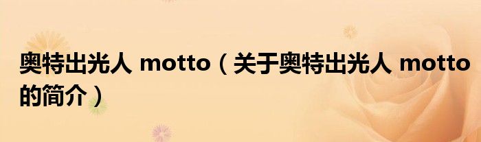 本文關于奧特出光人 motto的簡介就講解完畢,希望對大家有所幫助。