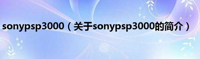 大家好,sonypsp3000,關于sonypsp3000的簡介很多人還不知道,現在讓我們一起來看看吧!