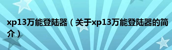 大家好,xp13萬能登陸器,關于xp13萬能登陸器的簡介很多人還不知道,現在讓我們一起來看看吧!