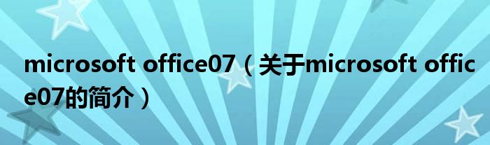 大家好,microsoft office07,關于microsoft office07的簡介很多人還不知道,現在讓我們一起來看看吧!