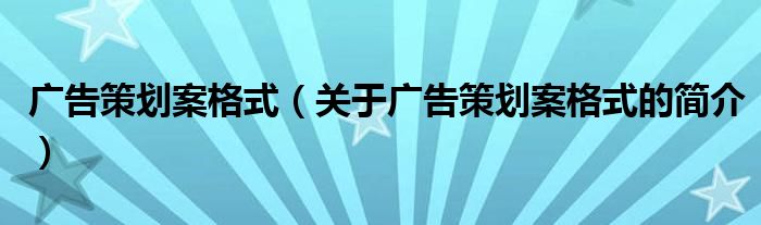 本文關于廣告策劃案格式的簡介就講解完畢,希望對大家有所幫助。