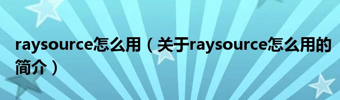 大家好,raysource怎么用,關于raysource怎么用的簡介很多人還不知道,現在讓我們一起來看看吧!