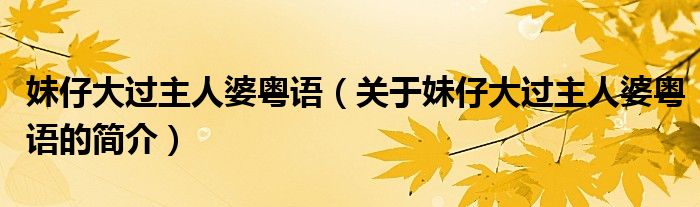 本文關(guān)于妹仔大過主人婆粵語的簡介就講解完畢,希望對(duì)大家有所幫助。