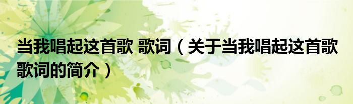 本文關于當我唱起這首歌 歌詞的簡介就講解完畢,希望對大家有所幫助。