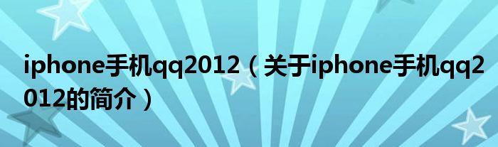 本文關于iphone手機qq2012的簡介就講解完畢,希望對大家有所幫助。