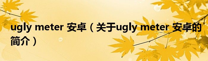 本文關于ugly meter 安卓的簡介就講解完畢,希望對大家有所幫助。