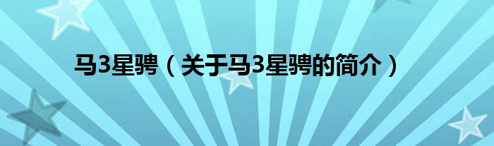 本文關(guān)于馬3星騁的簡(jiǎn)介就講解完畢,希望對(duì)大家有所幫助。