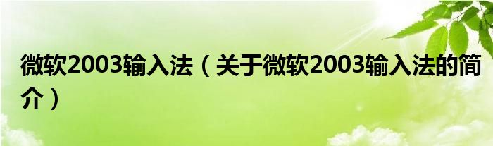 大家好,微軟2003輸入法,關(guān)于微軟2003輸入法的簡介很多人還不知道,現(xiàn)在讓我們一起來看看吧!