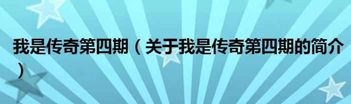 本文關于我是傳奇第四期的簡介就講解完畢,希望對大家有所幫助。