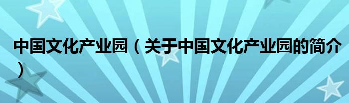 大家好,中國文化產業園,關于中國文化產業園的簡介很多人還不知道,現在讓我們一起來看看吧!