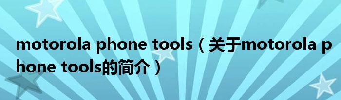 本文關于motorola phone tools的簡介就講解完畢,希望對大家有所幫助。