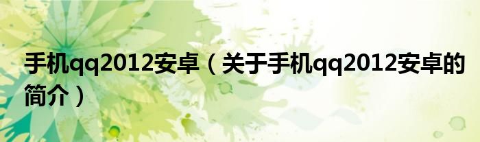 本文關于手機qq2012安卓的簡介就講解完畢,希望對大家有所幫助。