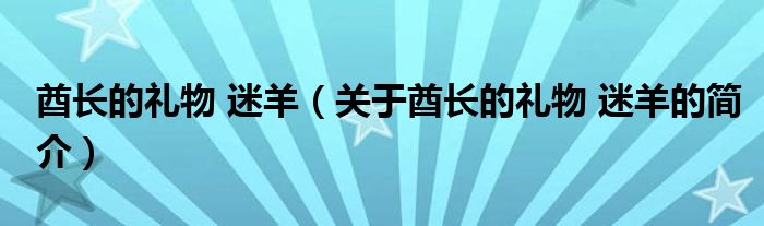 大家好,酋長的禮物 迷羊,關(guān)于酋長的禮物 迷羊的簡介很多人還不知道,現(xiàn)在讓我們一起來看看吧!