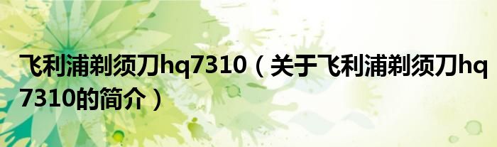 本文關于飛利浦剃須刀hq7310的簡介就講解完畢,希望對大家有所幫助。
