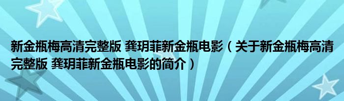 本文關于新金瓶梅高清完整版 龔玥菲新金瓶電影的簡介就講解完畢,希望對大家有所幫助。
