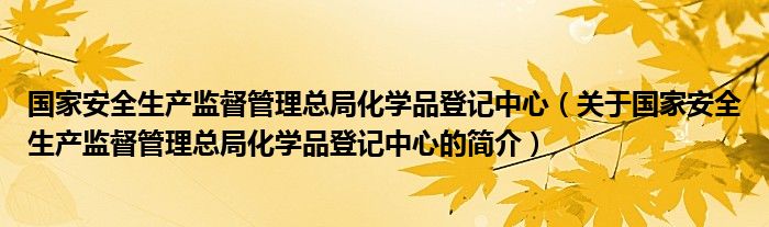 本文關于國家安全生產監督管理總局化學品登記中心的簡介就講解完畢,希望對大家有所幫助。