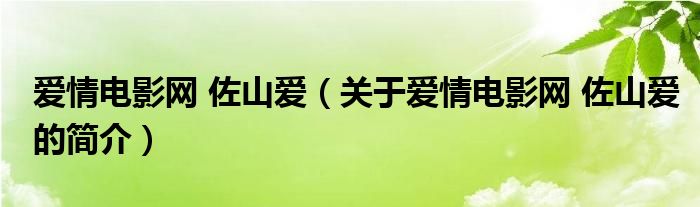 本文關于愛情電影網 佐山愛的簡介就講解完畢,希望對大家有所幫助。