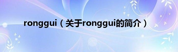本文關于ronggui的簡介就講解完畢,希望對大家有所幫助。
