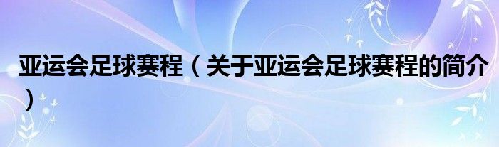 本文關于亞運會足球賽程的簡介就講解完畢,希望對大家有所幫助。