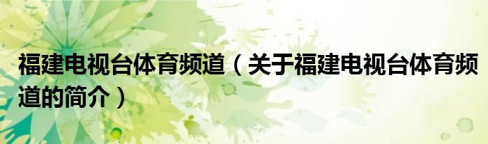 本文關于福建電視臺體育頻道的簡介就講解完畢,希望對大家有所幫助。