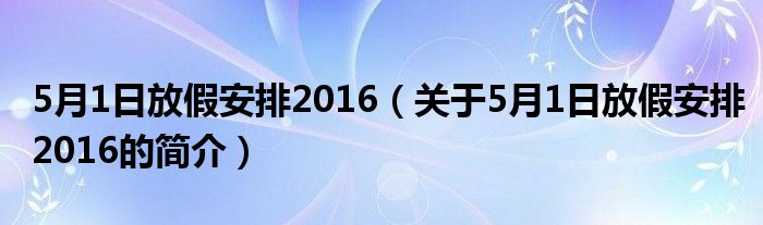 本文關于5月1日放假安排2016的簡介就講解完畢,希望對大家有所幫助。