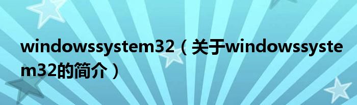 大家好,windowssystem32,關于windowssystem32的簡介很多人還不知道,現在讓我們一起來看看吧!
