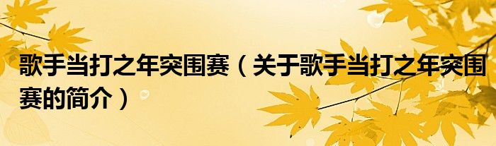 本文關于歌手當打之年突圍賽的簡介就講解完畢,希望對大家有所幫助。