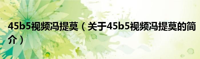 大家好,45b5視頻馮提莫,關于45b5視頻馮提莫的簡介很多人還不知道,現在讓我們一起來看看吧!