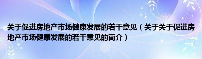 本文關于關于促進房地產市場健康發展的若干意見的簡介就講解完畢,希望對大家有所幫助。