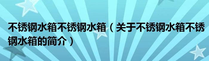 本文關于不銹鋼水箱不銹鋼水箱的簡介就講解完畢,希望對大家有所幫助。