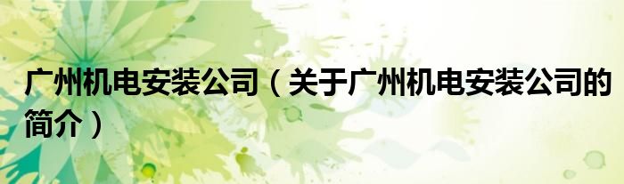 本文關(guān)于廣州機電安裝公司的簡介就講解完畢,希望對大家有所幫助。