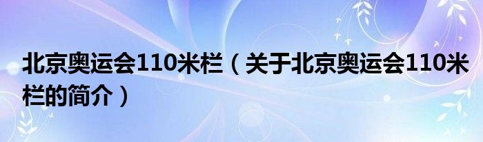 本文關(guān)于北京奧運(yùn)會110米欄的簡介就講解完畢,希望對大家有所幫助。