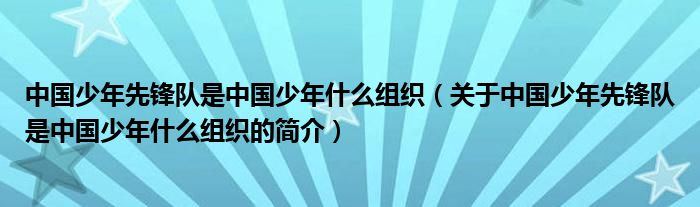 本文關于中國少年先鋒隊是中國少年什么組織的簡介就講解完畢,希望對大家有所幫助。