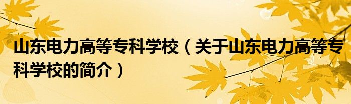 本文關于山東電力高等專科學校的簡介就講解完畢,希望對大家有所幫助。