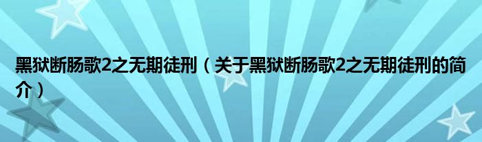 本文關于黑獄斷腸歌2之無期徒刑的簡介就講解完畢,希望對大家有所幫助。
