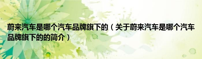 本文關于蔚來汽車是哪個汽車品牌旗下的的簡介就講解完畢,希望對大家有所幫助。