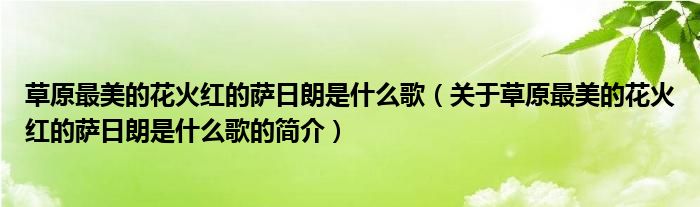 本文關(guān)于草原最美的花火紅的薩日朗是什么歌的簡介就講解完畢,希望對(duì)大家有所幫助。