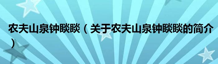 大家好,農夫山泉鐘睒睒,關于農夫山泉鐘睒睒的簡介很多人還不知道,現在讓我們一起來看看吧!