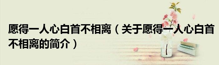 大家好,愿得一人心白首不相離,關于愿得一人心白首不相離的簡介很多人還不知道,現在讓我們一起來看看吧!