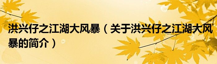 本文關于洪興仔之江湖大風暴的簡介就講解完畢,希望對大家有所幫助。
