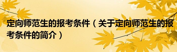 大家好,定向師范生的報(bào)考條件,關(guān)于定向師范生的報(bào)考條件的簡介很多人還不知道,現(xiàn)在讓我們一起來看看吧!